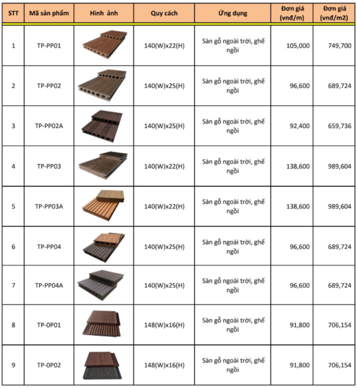 Bảng giá một sổ sàn gỗ nhựa composite.