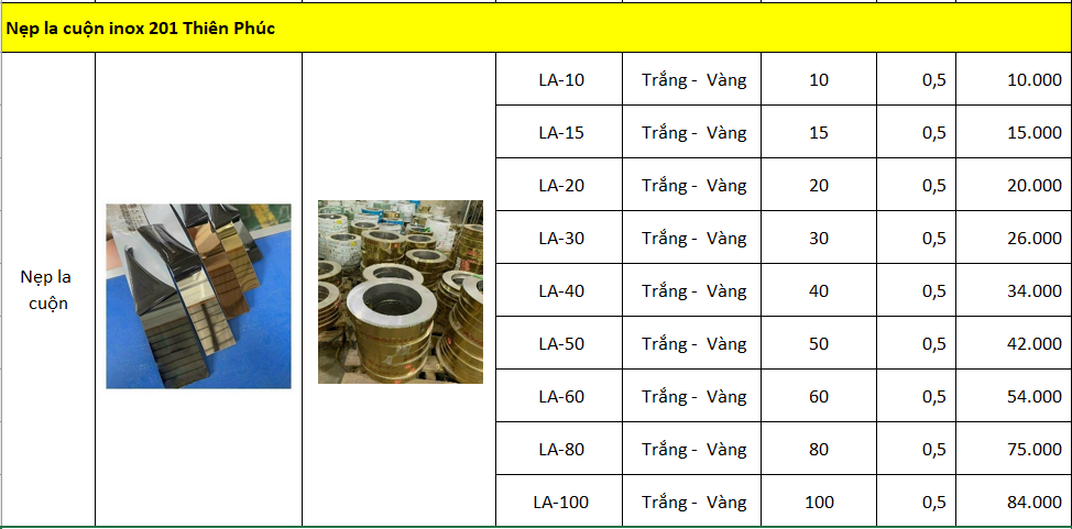 Bảng giá và kích thước nẹp la cuộn inox 201