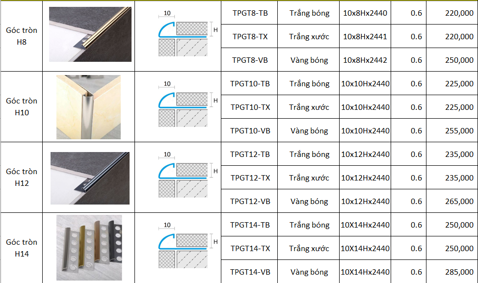 Trong đó, nẹp góc tròn inox là một trong các loại nẹp trang trí được sử dụng nhiều nhất để bảo vệ góc vuông có hình dạng bo tròn. Nẹp được làm từ inox 304, có nhiều kích thước và màu sắc khác nhau, phù hợp với nhiều loại vật liệu và mục đích sử dụng.