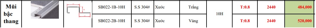 Bảng giá nẹp mũi bậc cầu thang inox 304